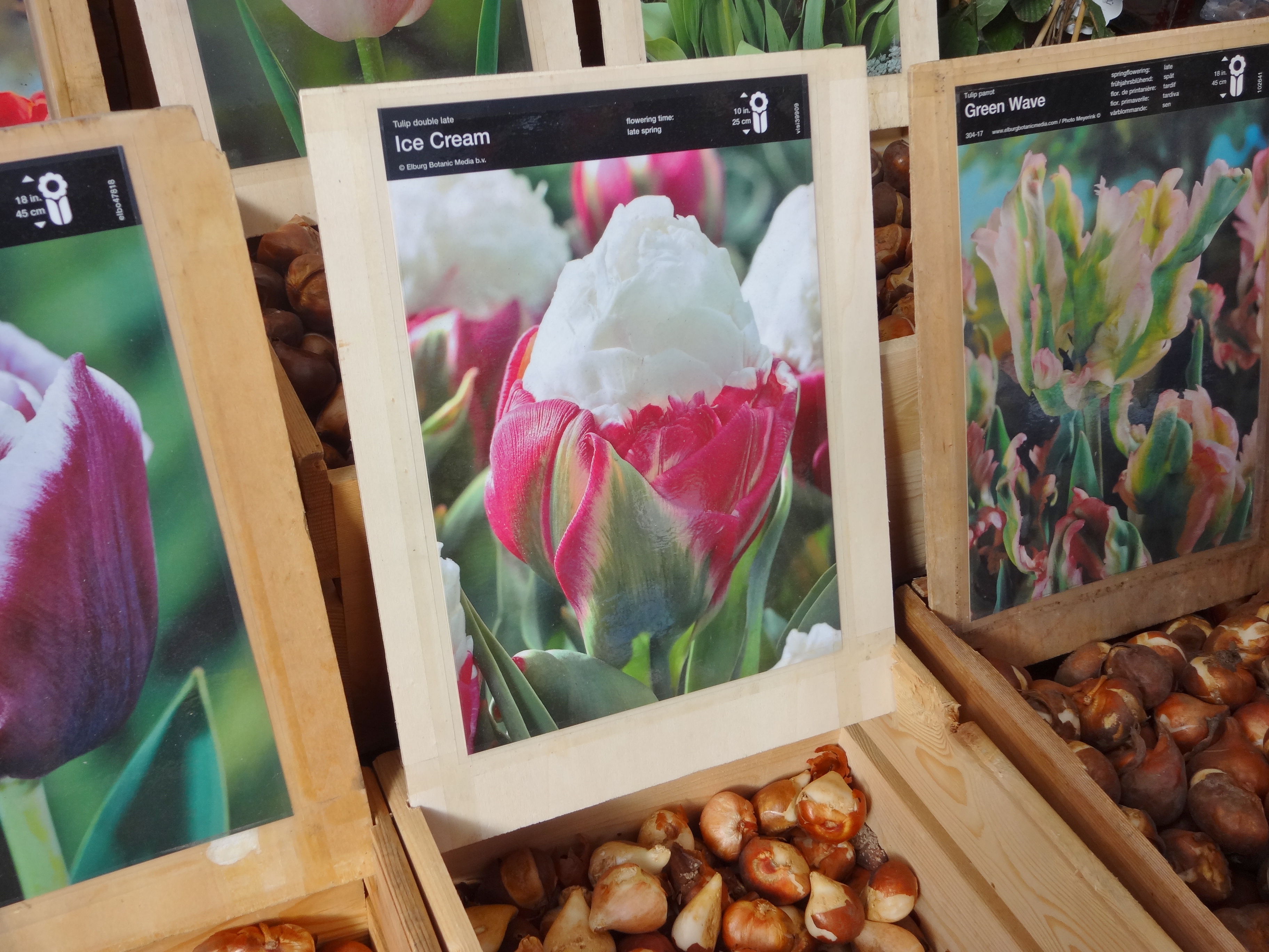 Tulips. I wanted to bring some of these ice cream tulip bulbs home, but they’re not cleared for export to the USA yet. The shop owner said I’d have to smuggle them in. Um, no thanks. I’d look too guilty!