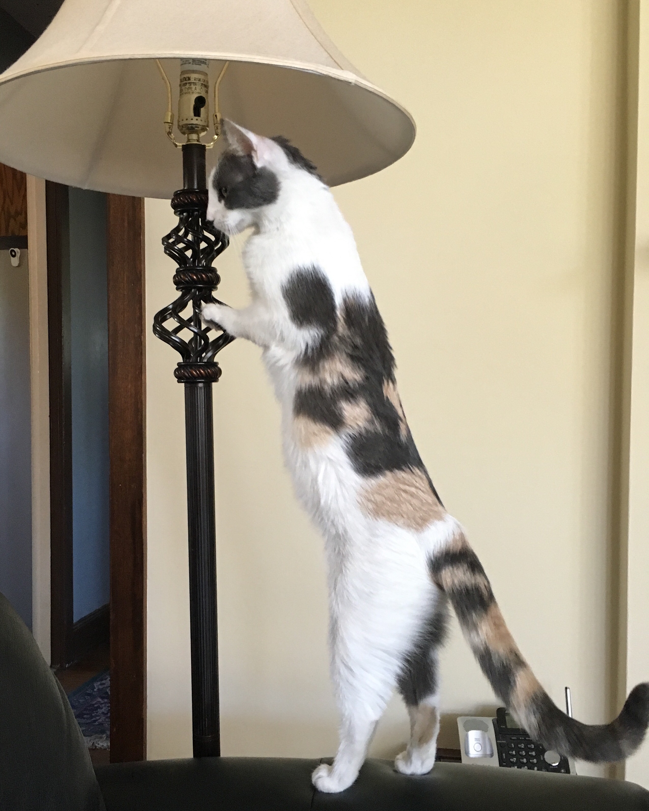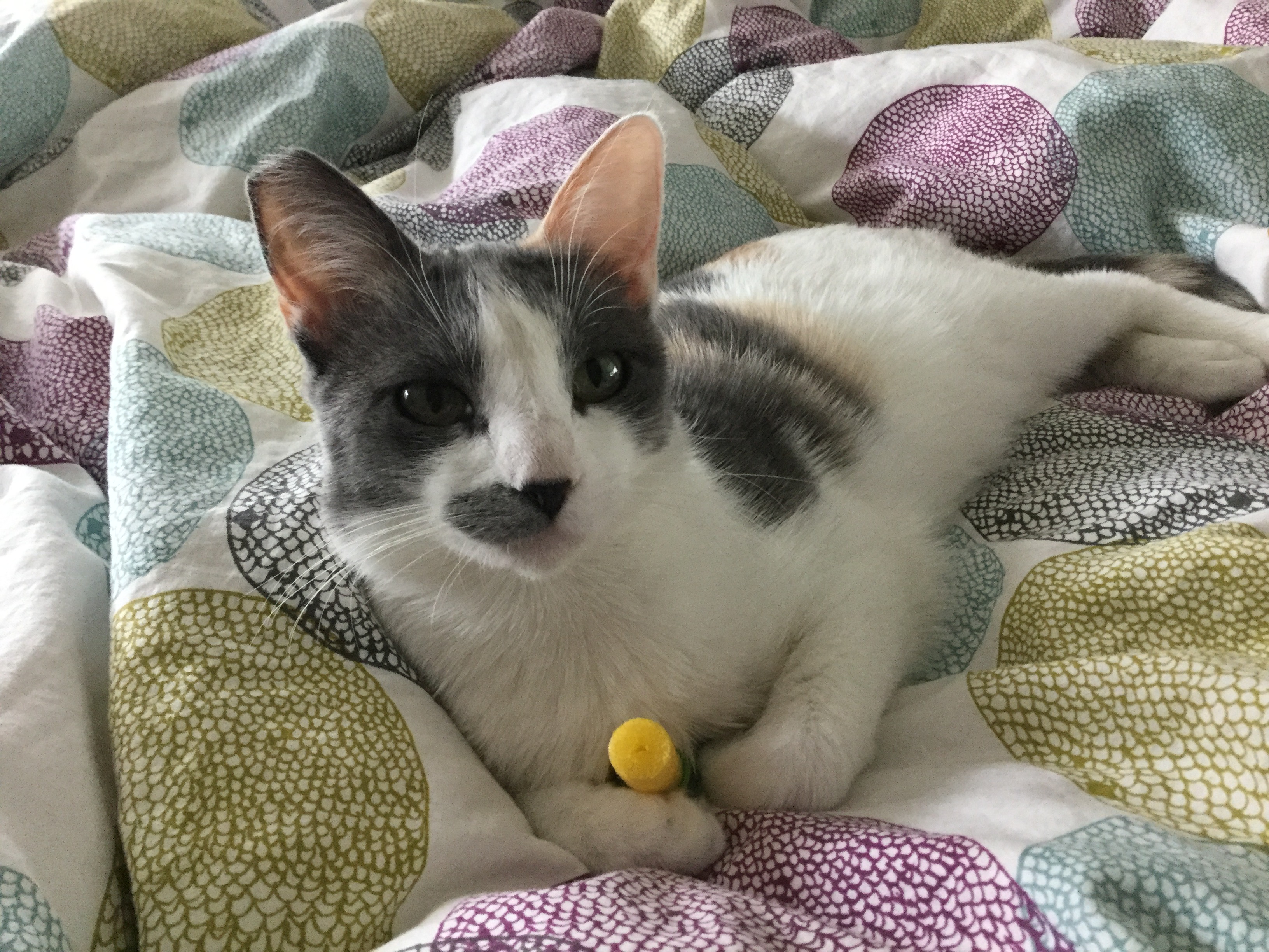 When we first got her, she had giardia (unbeknownst to us) and an upper respiratory infection. We’ve seen the vet a lot! Hoping things calm down, and that she calms down some, too. She’s a squirrely one! Her energy level is perfect when she’s 90% healthy…😻