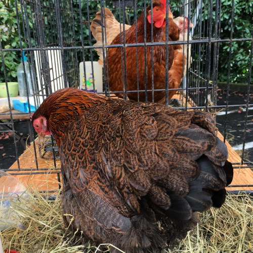 The theme of this year’s yarn crawl was Portland Pastimes. And raising chickens in your yard is one of those pastimes. I loved the feathers on this partridge cochin hen.