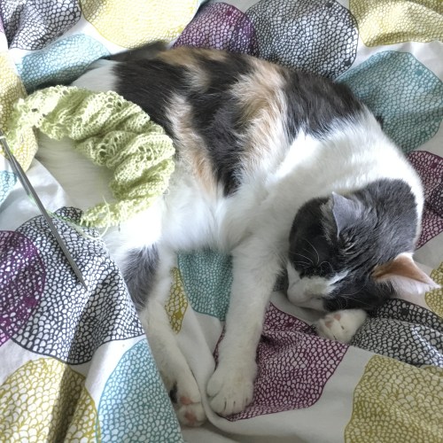 Biscuit and I are testing out ideas for this lovely yarn from Bumblebirch. I think I know what it’s going to be. Biscuit is still dreaming.