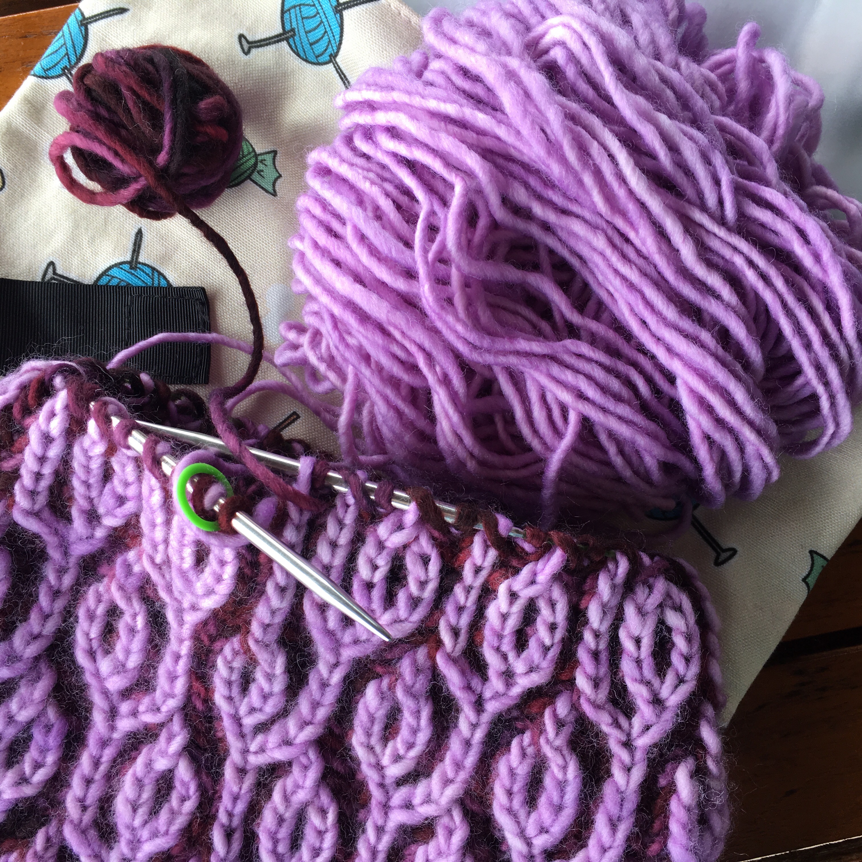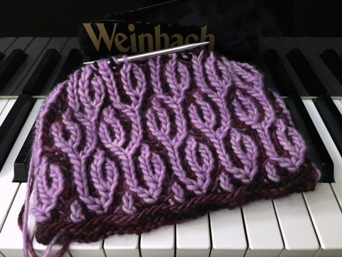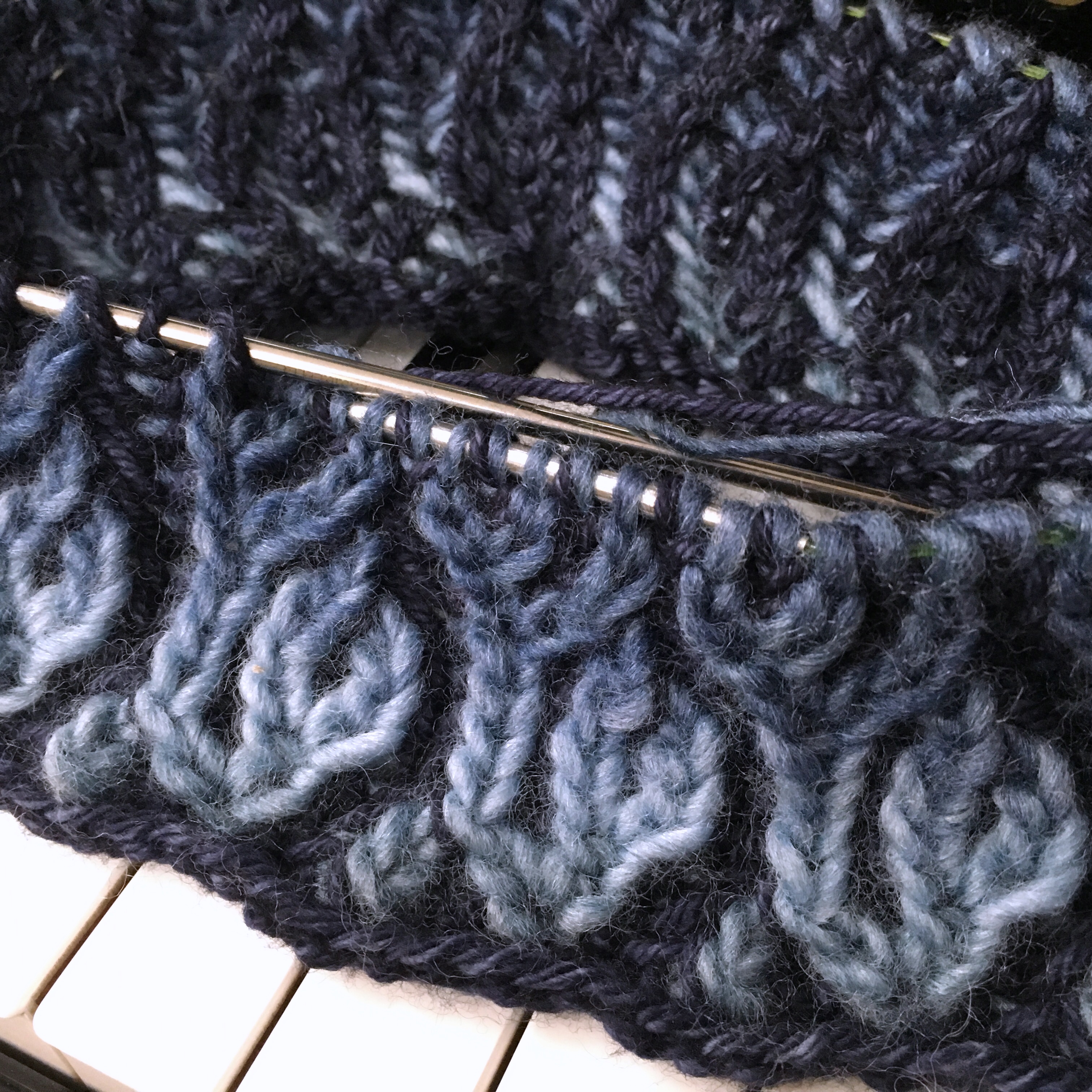 I ripped down this beginning of a brioche cowl; it wasn’t wide enough, and I wanted the leaves to be taller. But it all got sidetracked anyway…
