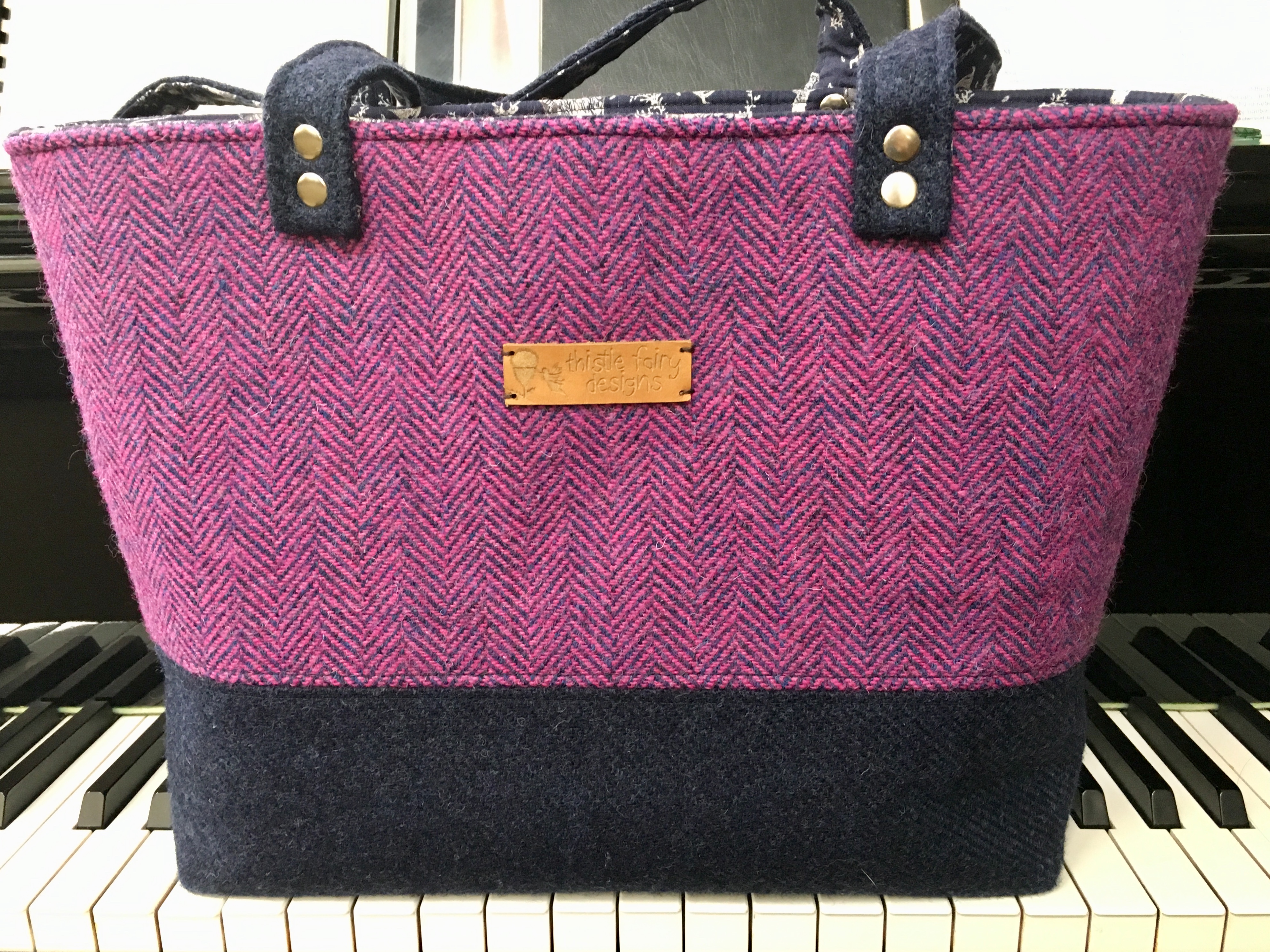 This bag is made by Shona of Thistle Fairy Designs. I love the colors of this tweed; it’s so vibrantly pinky purple!