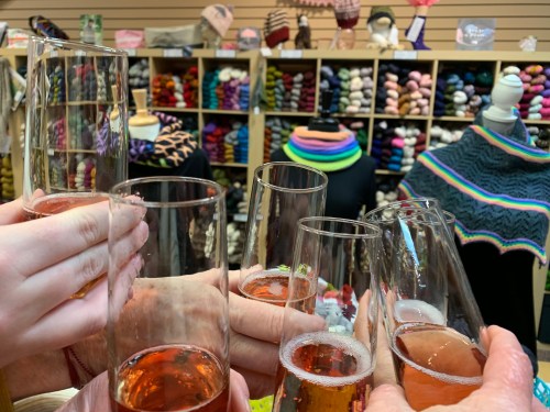 Thanks so much to Anne Lindquist of For Yarn’s Sake for hosting us, and for supplying these beautiful rosé bubbles!