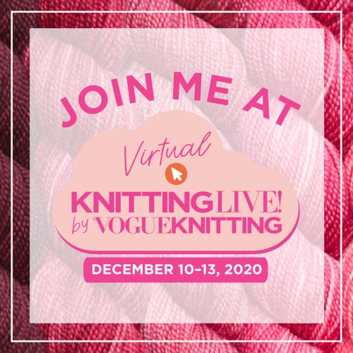 I’m teaching both of these classes for Virtual Vogue Knitting Live this coming weekend. The Tink class is full, but there’s still room in the Log Cabin class. I’m also teaching Next Steps in Brioche/Increases and Decreases with my Deep End hat or cowl or Madrona Cowl, and Cast On/ Bind Off.