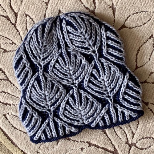 Of course, removing 4 stitches meant removing 4 rounds per leaf, which meant the hat would be too short. So I added one more vertical repeat. More leaves! I had to finesse a bit at the beginning of the hat to end up with approximately the number of rounds I wanted, and it worked. It was a balancing act, and it was fun to puzzle it out.