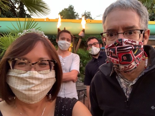 I baked a flourless chocolate torte, which we paired with an ice cream sampler. The new way to blow out birthday candles is by waving your hands at them. Thanks, pandemic! Still fun.