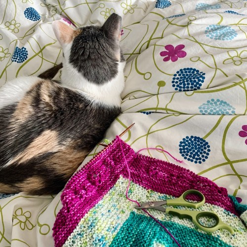 No hurry on knitting; that’s what 2022 is for. I’m trying to finish up this shawl before moving on to a new project. I usually do things one at a time, or I’d never finish anything.