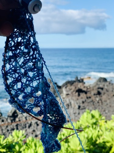 I like how it’s going so far. My yarn scale tells me I am close to finished; I just have to decide what I want the end to look like. Sometimes that’s the hardest part.