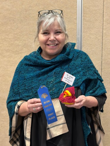Debbie’s duck took Top Duck and Fan Favorite. The small scale lace and bead shawl plus the red hat were well done.