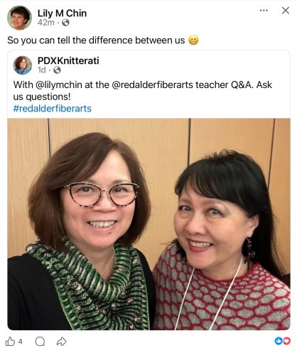 I had a fabulous time at Red Alder Fiber Arts Festival last weekend. I taught 4 classes: Brioche Pastiche, Brioche Doctor, Embellished Brioche (brioche + assigned pooling), and Fun Stitches for Assigned Pooling. I was in my technique heaven!