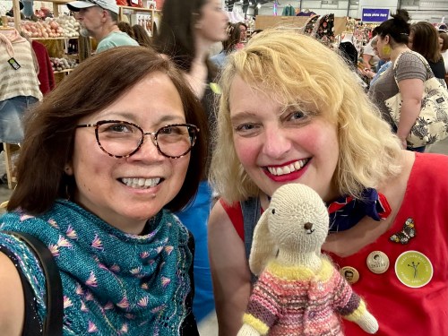 Well, that was a hoot! With a hootenanny! The second annual Nash Yarn Fest by Modern Daily Knitting was a great opportunity to see old friends and new, hear music and speakers, and shop for yarn and yarn-adjacent goodies. I had a great time. And participated in country line dancing for the first time. It’s not unlike tai chi; you learn some simple steps that get combined and repeated, and do them with a room full of like-minded people. Fun!