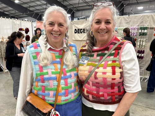 Nancy Marchant and her sister Jane came in woven knit vests. Woven knitting is Nancy’s current fascination. Cool!