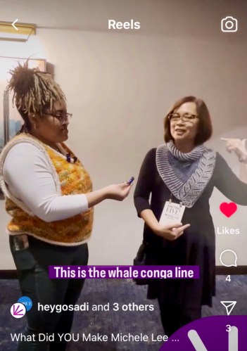 Erica of the “Bootie and Bossy Eat Drink Knit” podcast was a test knitter for Whale Conga Line, and talks about it in this episode of her podcast at about minute 26. This podcast series is lovely. This episode about a family gift stole my heart; I’ve subscribed and really enjoy the series.