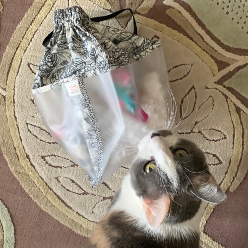 I have several of these Double Double project bags from Chicken Boots; they’ve been a constant favorite. I love that you can see what’s in them, which is great if you have multiple projects. When Saremy decided to discontinue making project bags (she now has her Sew Sew Live channel on Instagram and YouTube), I was pretty sad!