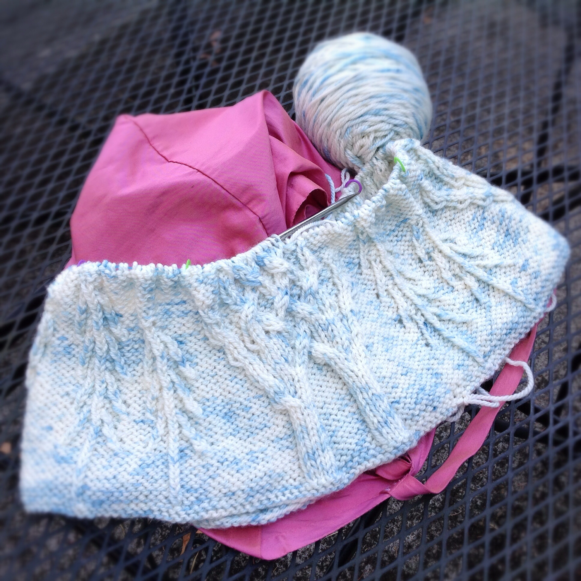 Well, that was quite the weekend! Oregon Flock and Fiber Festival was wonderful, as always. I taught two classes on Friday: Athena Entrelac Cowl and Fern Lace Shawlette (sideways shawl construction). My students were all great, and they all got it. I’m looking forward to seeing pictures of their lovely finished projects someday.