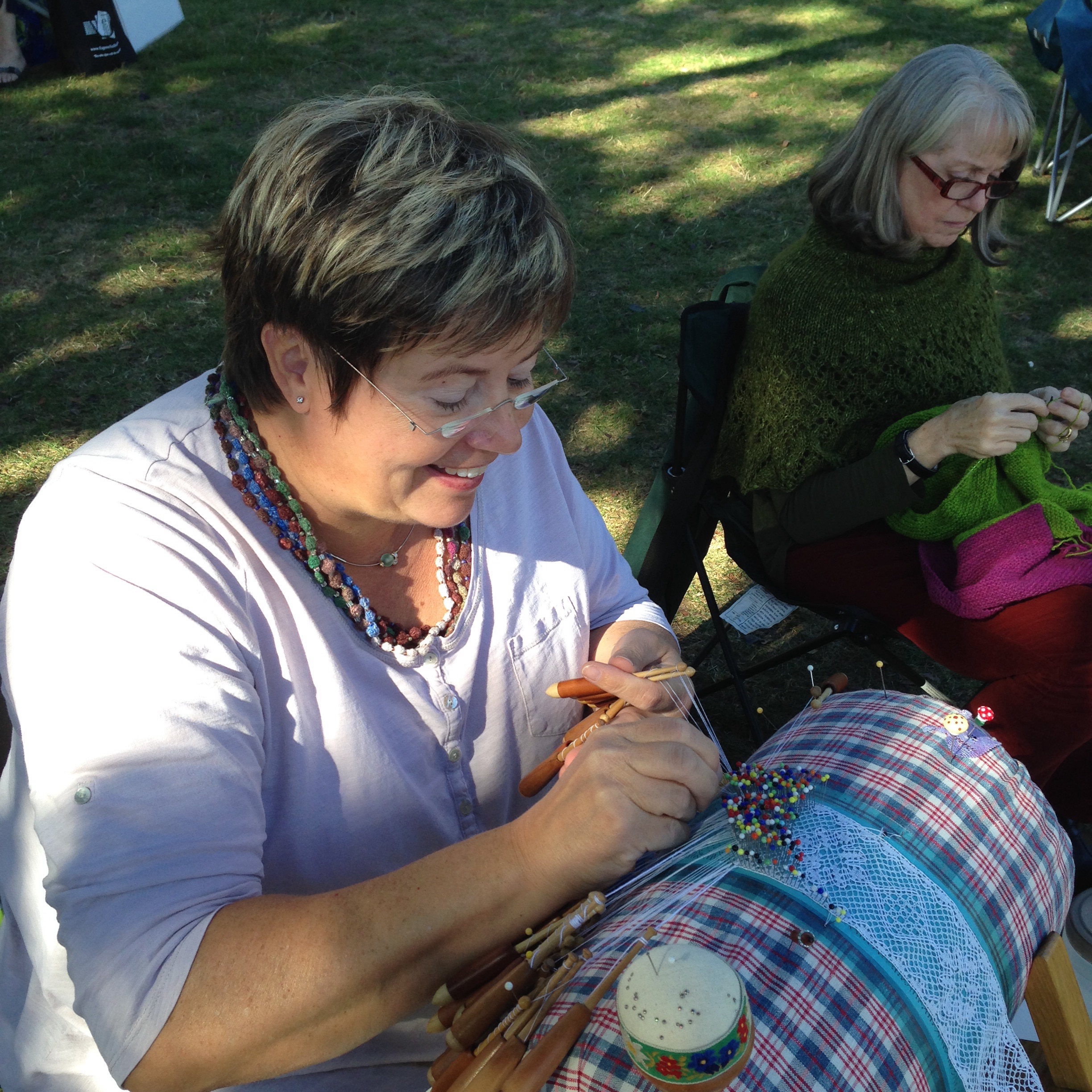 Christina making lace on the lawn
