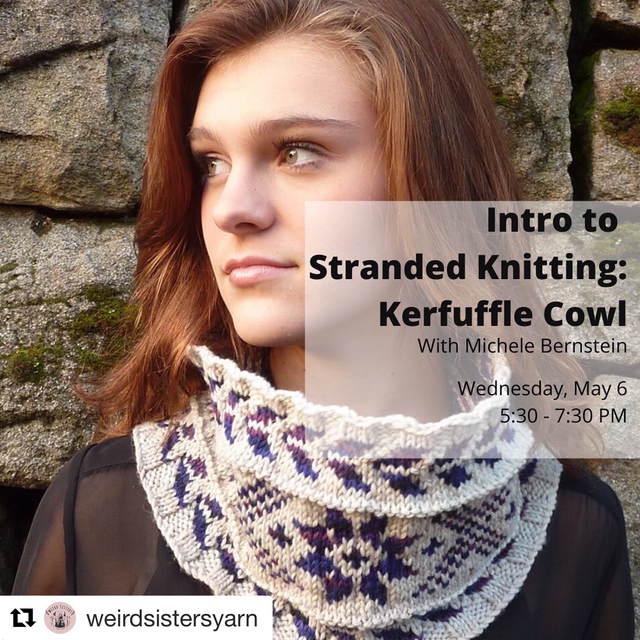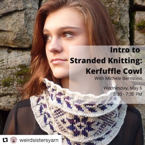 First, I have a Kerfuffle stranded colorwork cowl class on Wednesday evening through Weird Sisters. You don’t even have to be in the same time zone! Here’s the link.