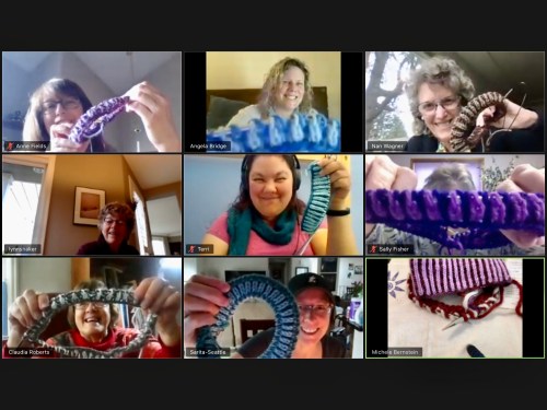 It *is* possible to learn knitting techniques through Zoom, and if you’re missing your usual knitting circle, this is a great way to get your knitting fix. We had a Petite Brioche class on Saturday, and everyone was successfully knitting brioche by the end of class.