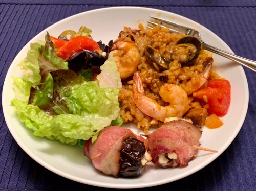 Jenn even lent us paella pans for the event. So perfect! I did all the shopping; it was like making a meal kit for the kids. They’re in a Covid bubble, as are we, so we had two houses cooking together, apart.