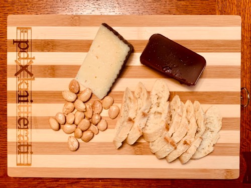 Jenn planned the whole meal. We had some nibbles before dinner: Manchego cheese, quince paste, marcona almonds and baguette.