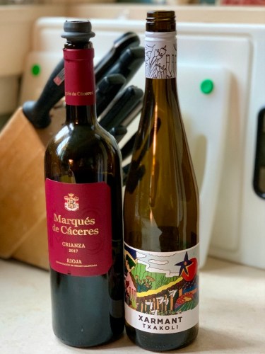 The kids bought these delightful Spanish wines, red and an effervescent white. They were a perfect pairing with our dinner.