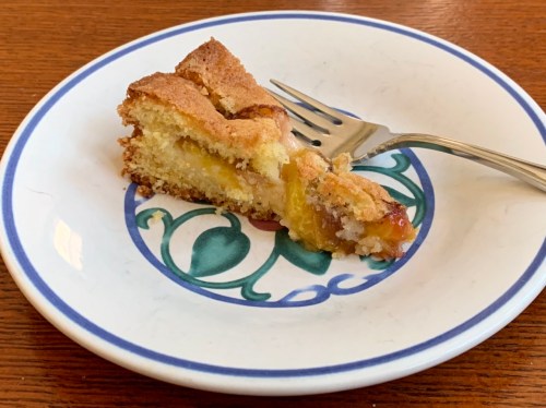 The little purple Italian plums are in season, and my friend Ann gave me some. They’re so good for snacking, and also for cake!
