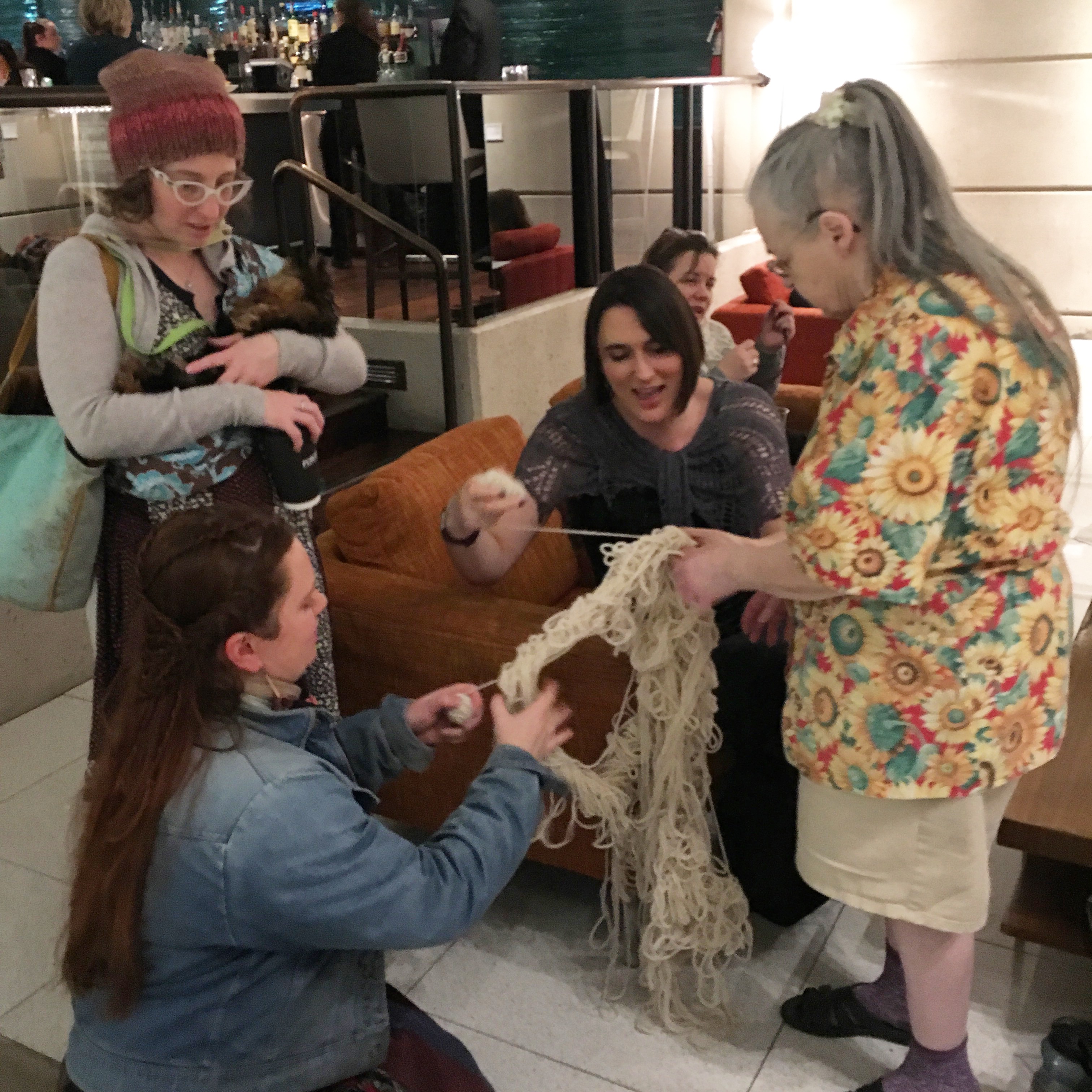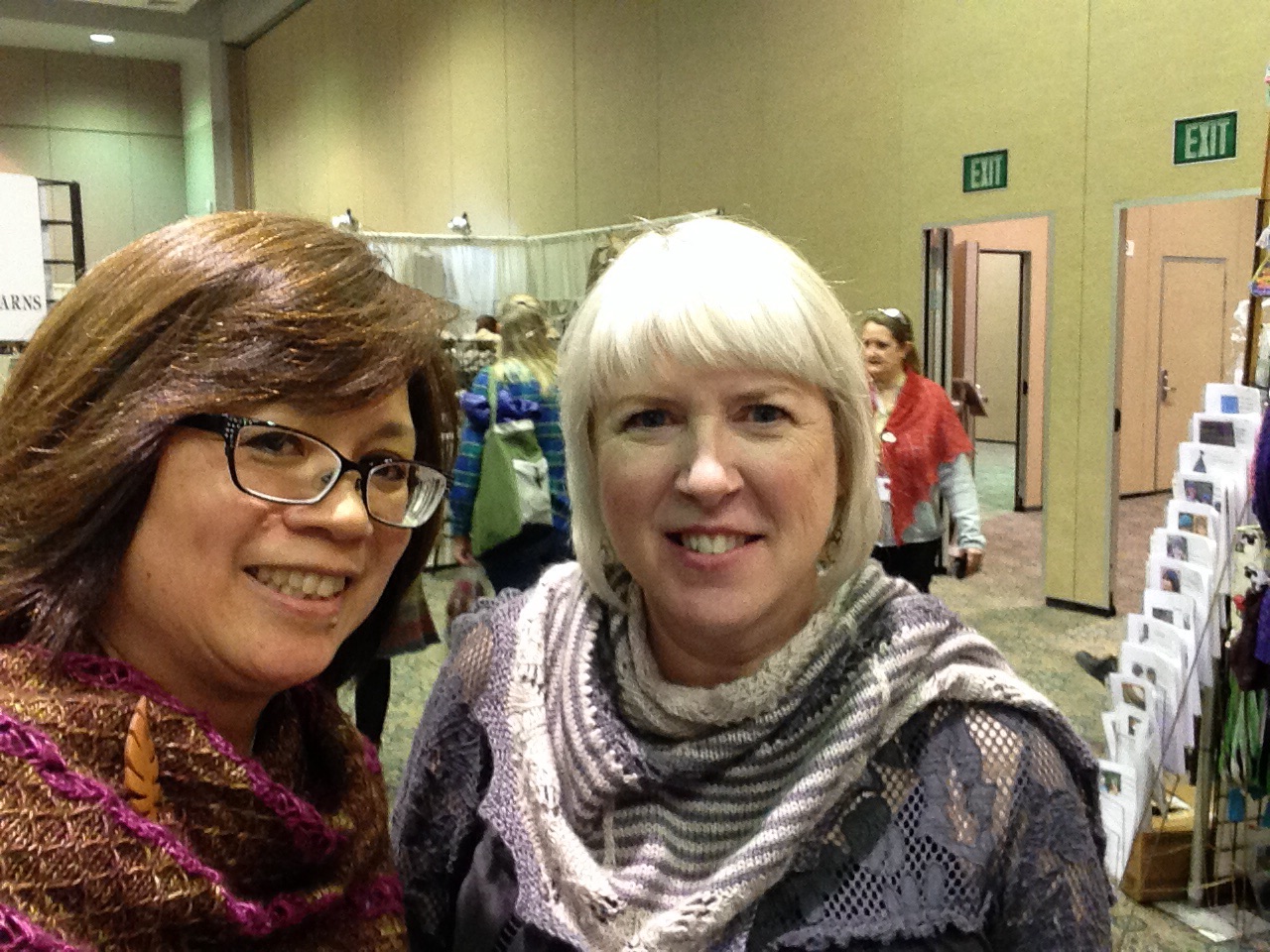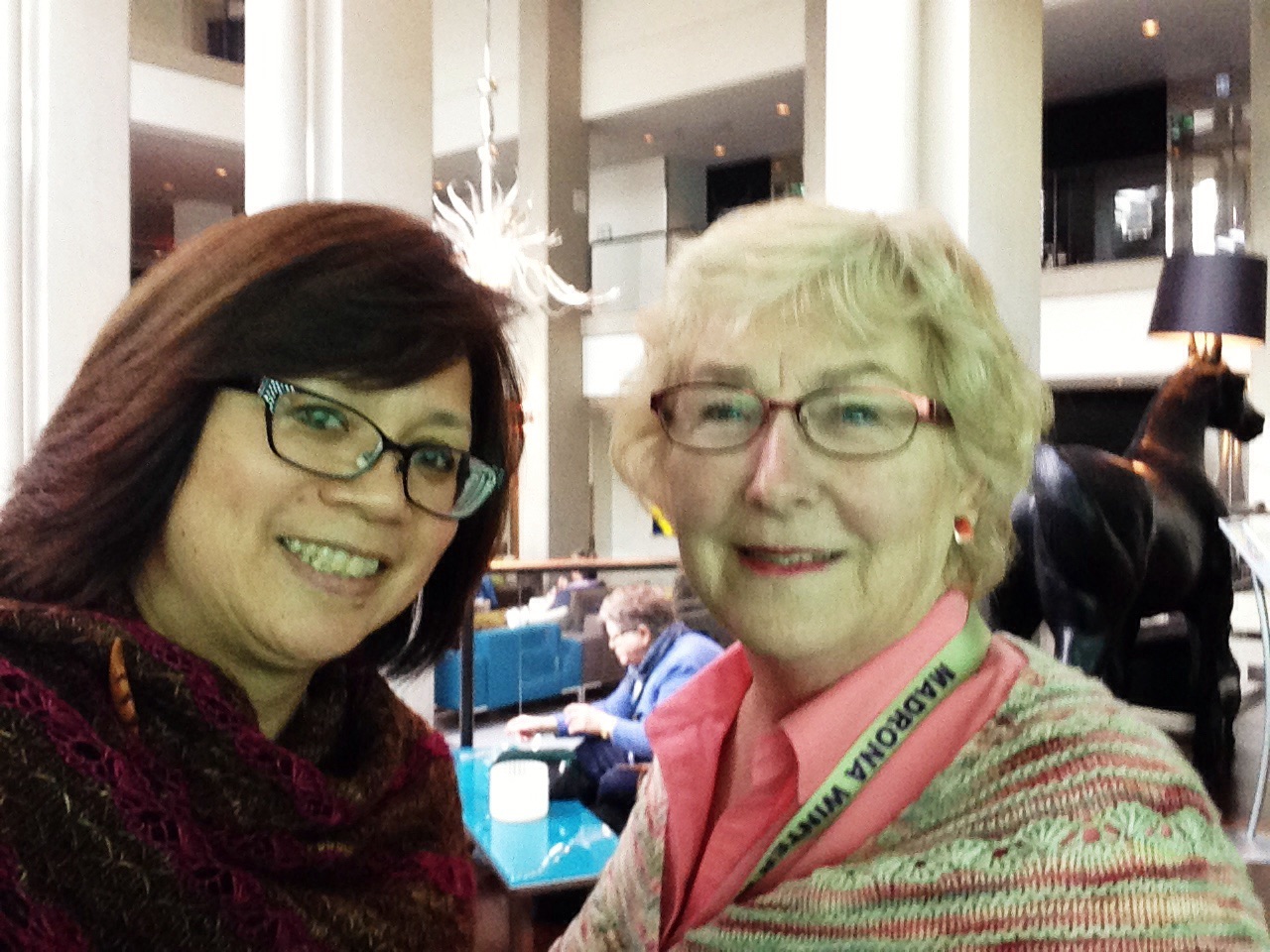 But Madrona isn’t just classes. There’s hang out time with other knitters/crocheters/spinners all over the hotel, and there are free demonstrations and workshops in the rotunda. The teacher talent show for charity helped raise over $12,000. And the market…