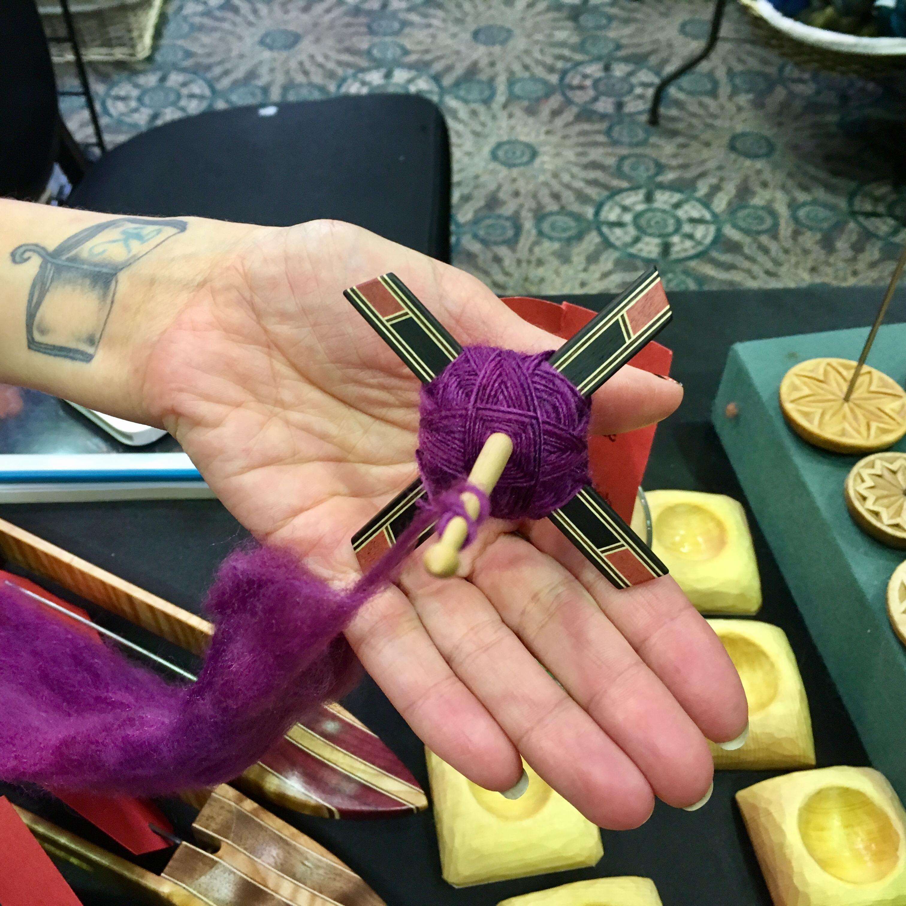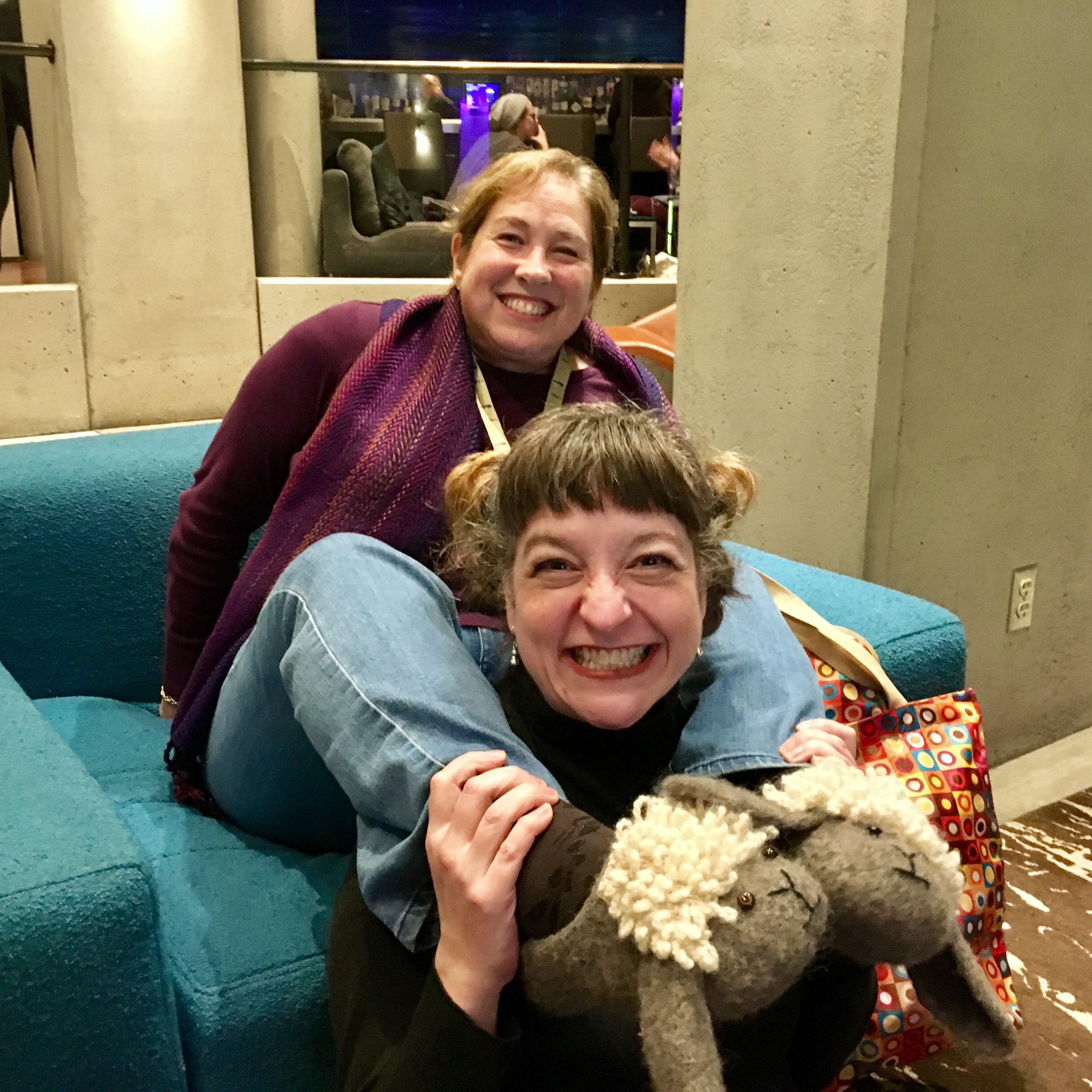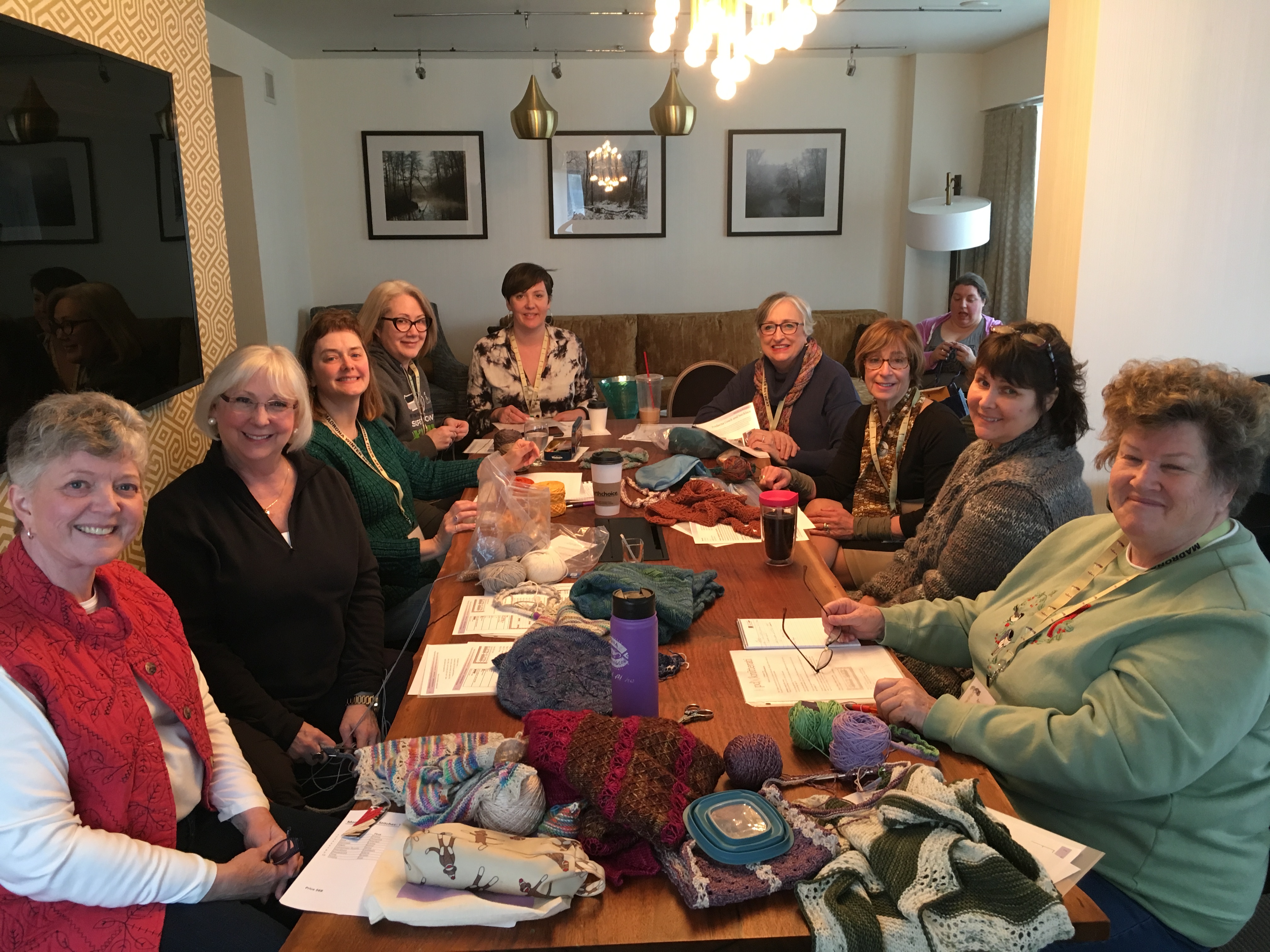 But Madrona isn’t just classes. There’s hang out time with other knitters/crocheters/spinners all over the hotel, and there are free demonstrations and workshops in the rotunda. The teacher talent show for charity helped raise over $12,000. And the market…