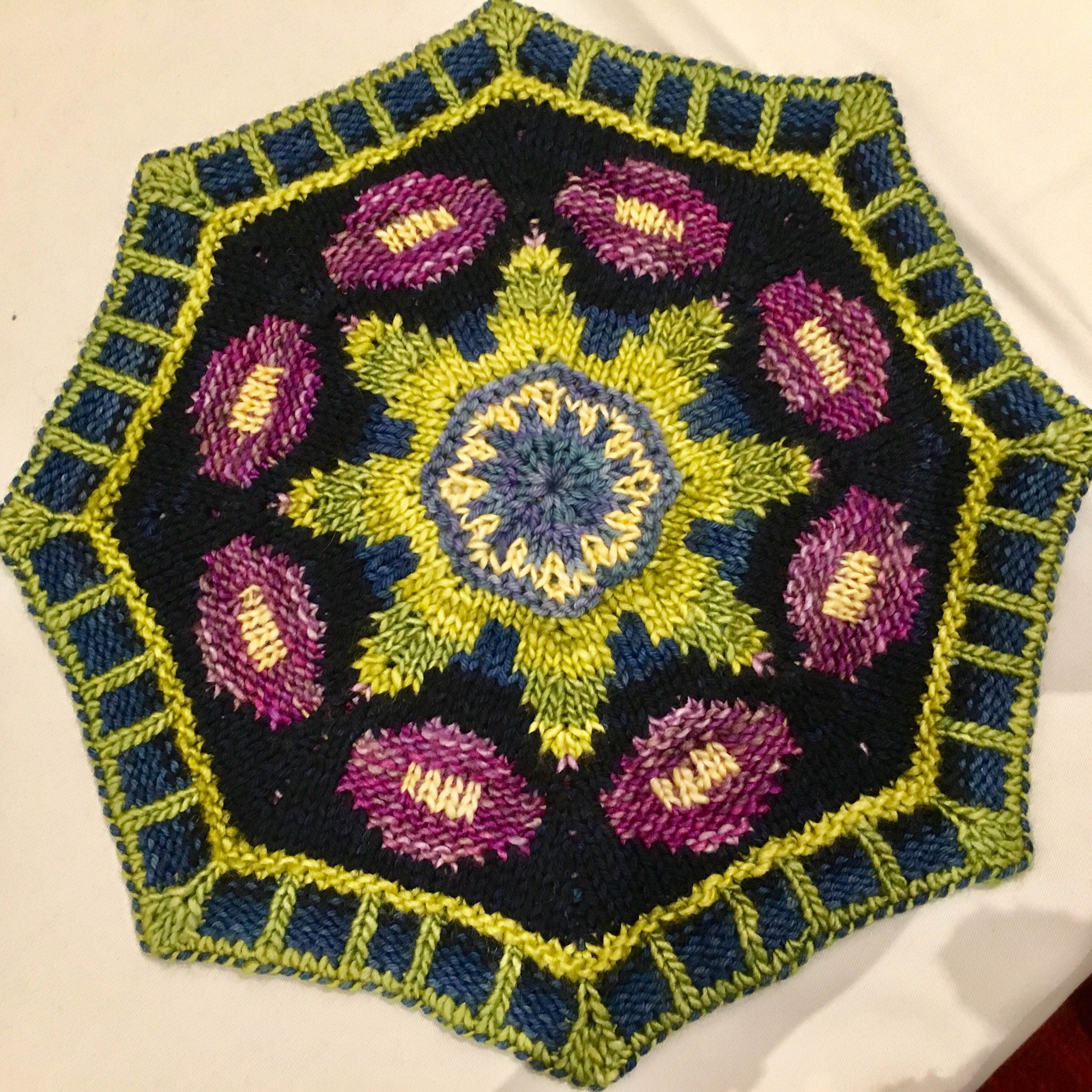 I also taught three classes at Madrona. My students were all great; they came well prepared and eager to learn. Rock stars! I taught a class on one of my favorite knitting techniques, knitting with elongated novelty stitches. We knit up this little sampler in class, using double and triple wrapped stitches and manipulating them into interesting patterns. These little gems can really dress up your stockinette!