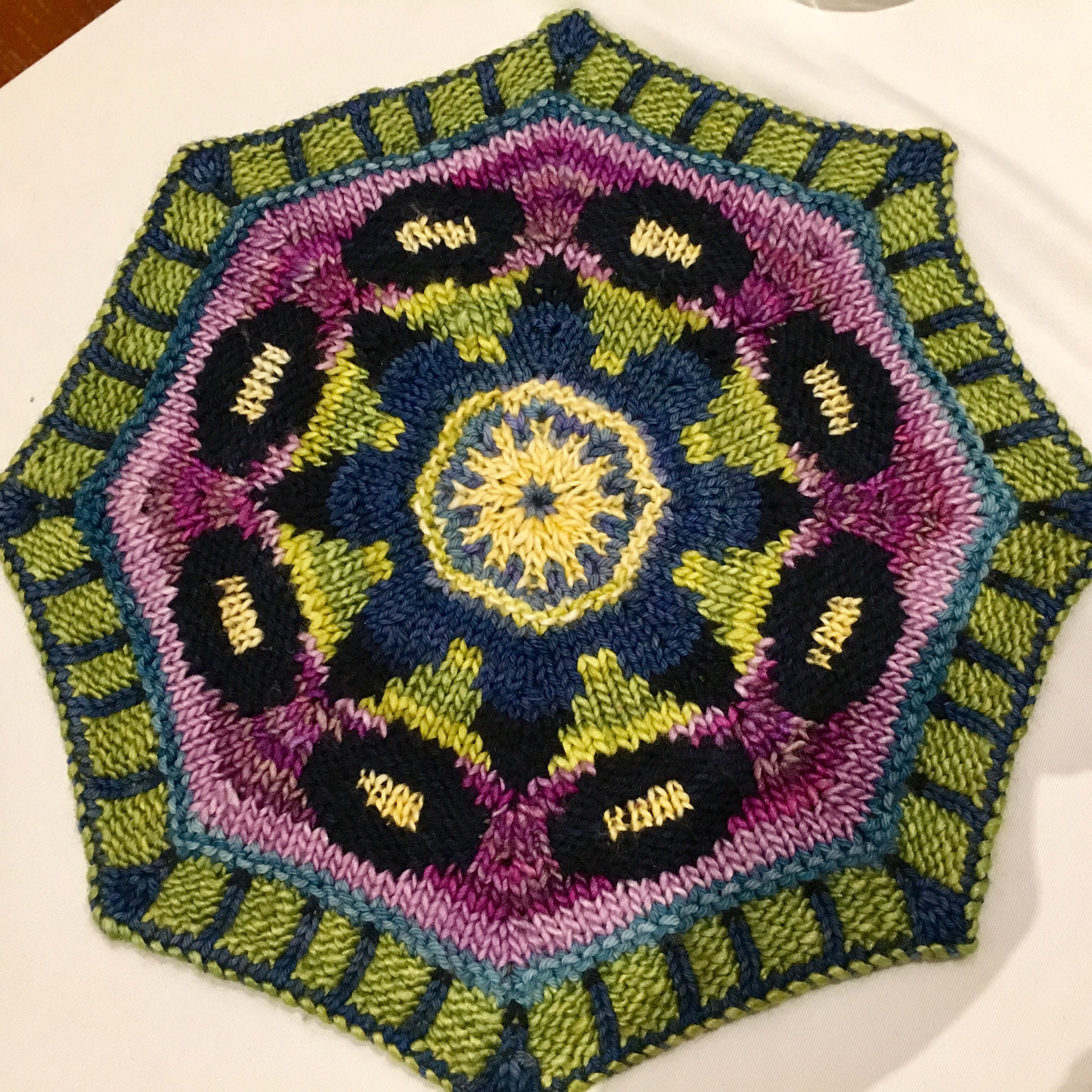 Adding a second color meant thinking a lot harder! When worked flat, it means working each row twice, first with one color, and then the other. You always start with color A when both yarns are at the same end. If they’re not at the same end, you need to catch up color B to color A. I found that it was easier for me to read my knitting than to read the written instructions. I hope that doesn’t come back to bite me later!