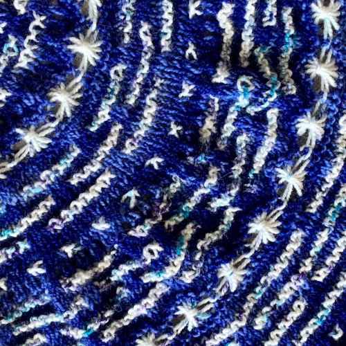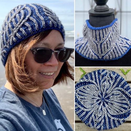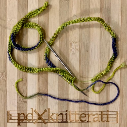 I came home with a finished frog hat, and a lot of swatching for a couple projects. But there’s a lot of information in swatches, so I’m on my way with a couple designs.