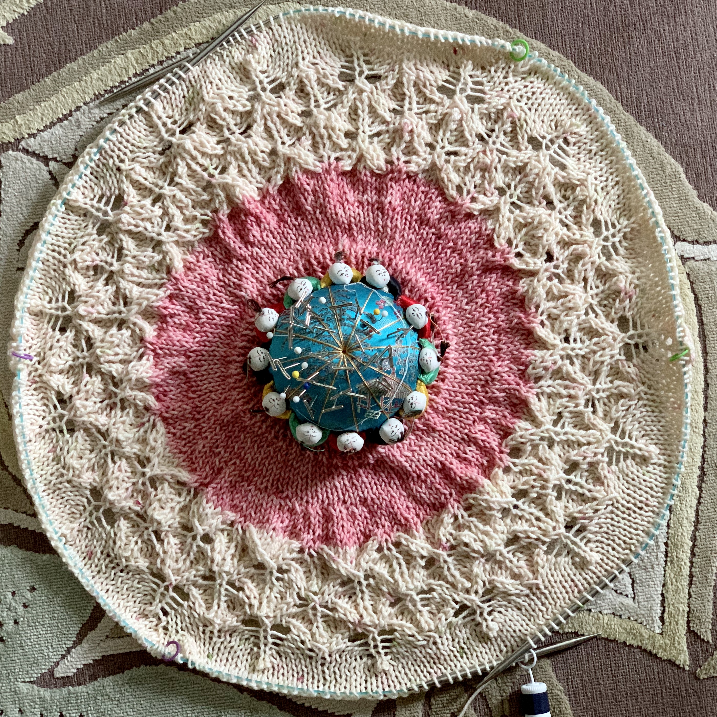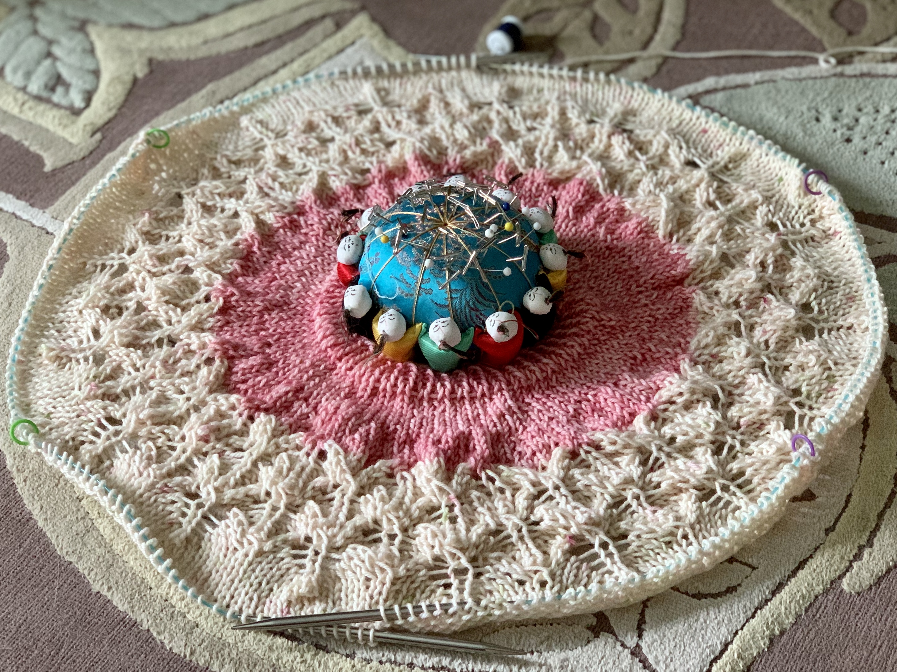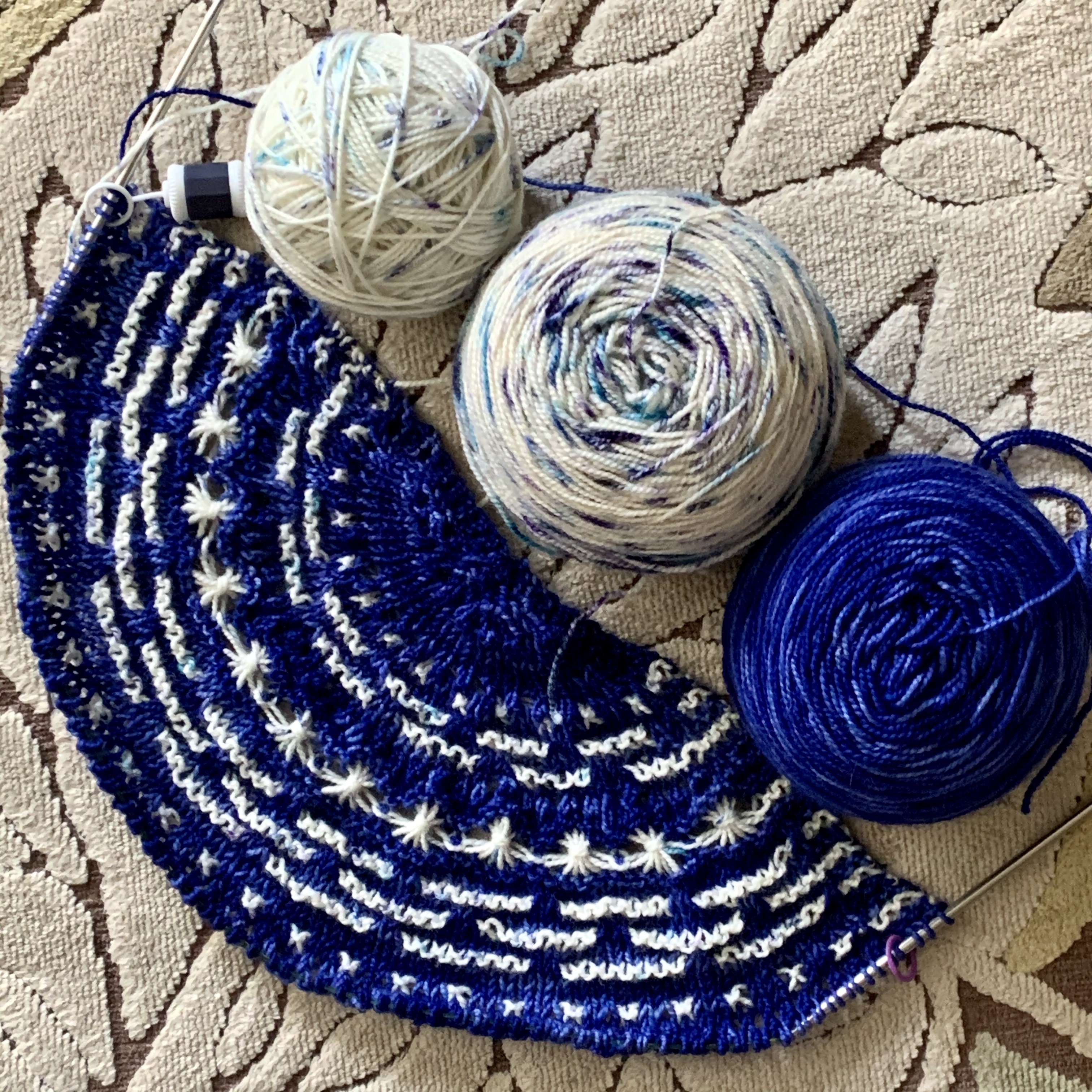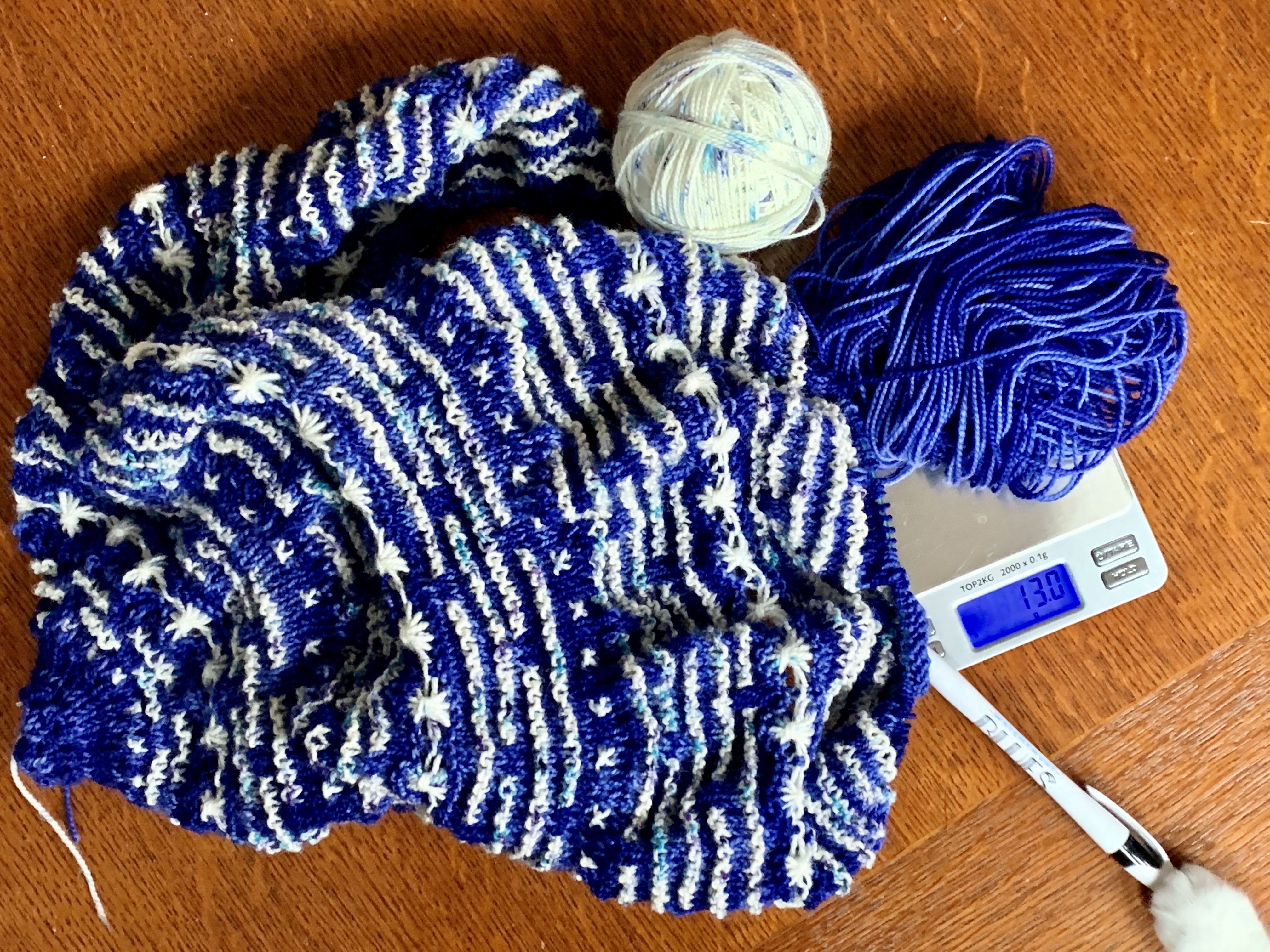 I came home with a finished frog hat, and a lot of swatching for a couple projects. But there’s a lot of information in swatches, so I’m on my way with a couple designs.