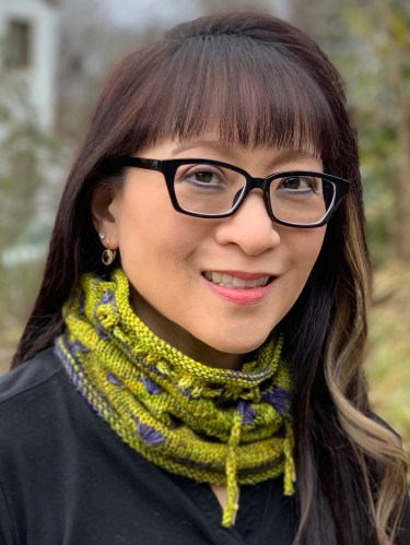 Fanfare is a convertible cowl/hat, designed to make the most of one skein of yarn that is dyed for assigned color pooling. It is knit in the round in worsted weight yarn.