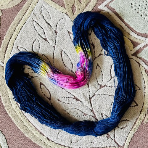I knit my shawlette using A Chick That Knitz Deluxe Sock in Wildflowers and Sassy, a fabulous hot pink.