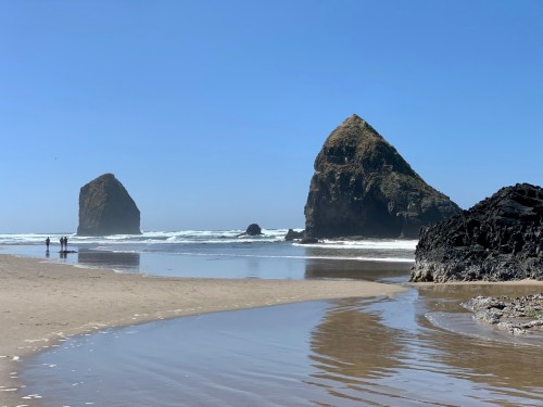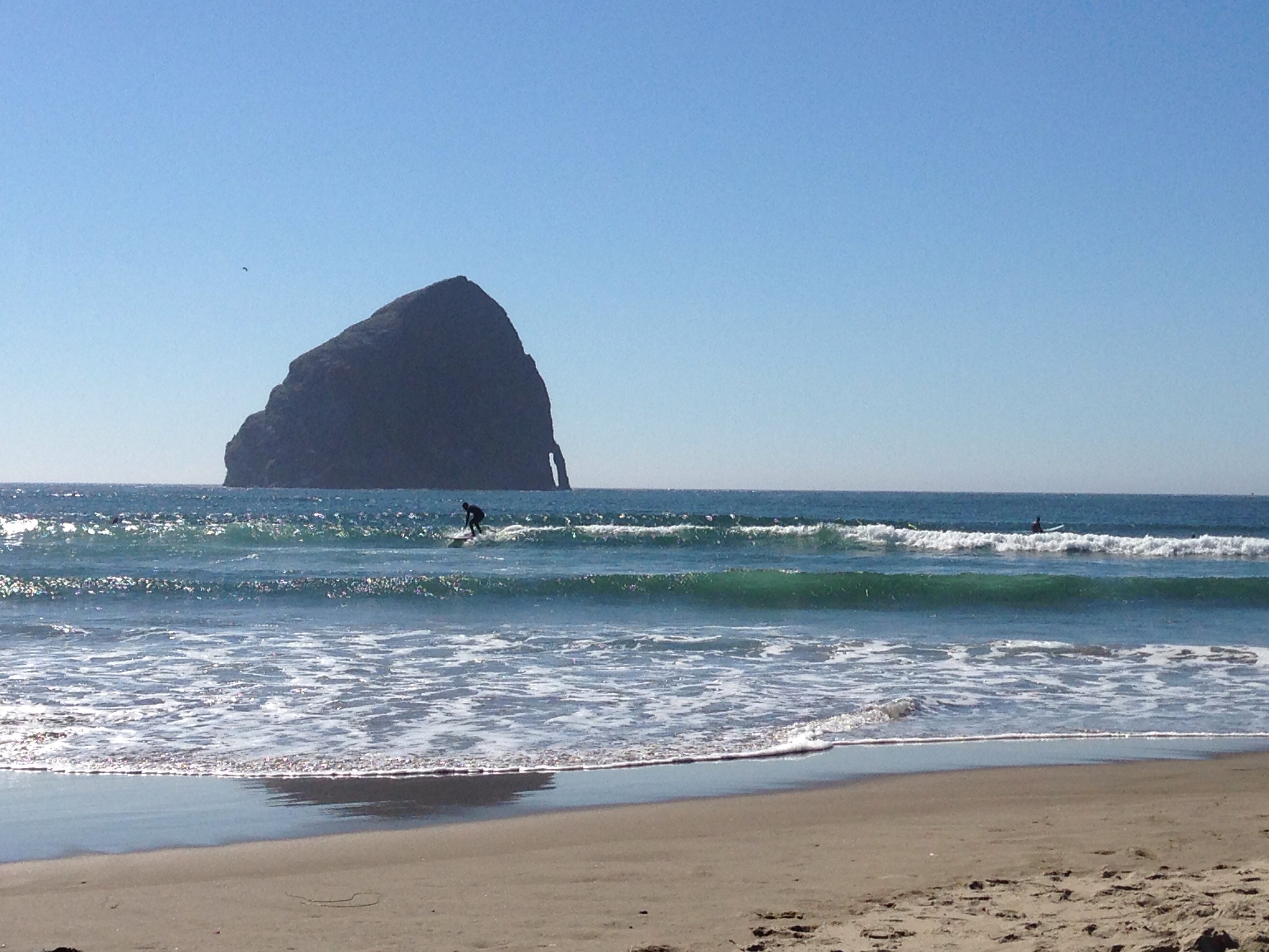 Further down the coast, north of Rockaway, looking back to see Twin Rocks. (I do love monoliths.)