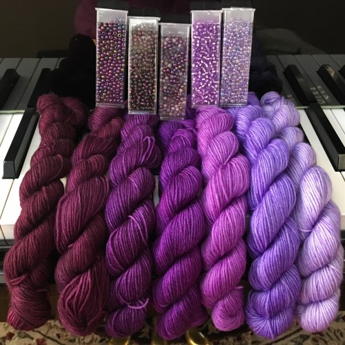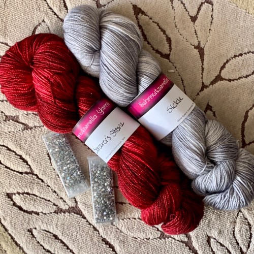 Sparkly fingering weight yarn from Schmutzerella, and beads from Bead Biz. I have a plan for this combination.