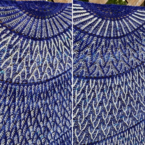 When I blocked and photographed the shawl, I discovered that there really was no wrong side. Both sides looked great. Voilà, Both Sides Now.