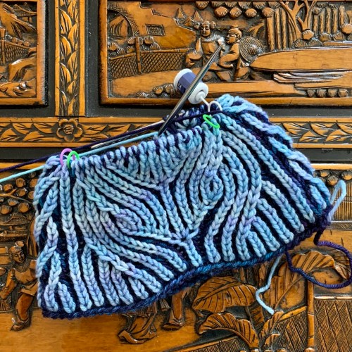 I frogged the first hat to reclaim the yarn, and am playing with mitts. Small circumference brioche is a bit fiddly with dpns or flexiflips or magic loop or 2 circulars! It’s so easy to gain or lose a YO by accident. But mitts could be very pretty. We’ll see how it works out.