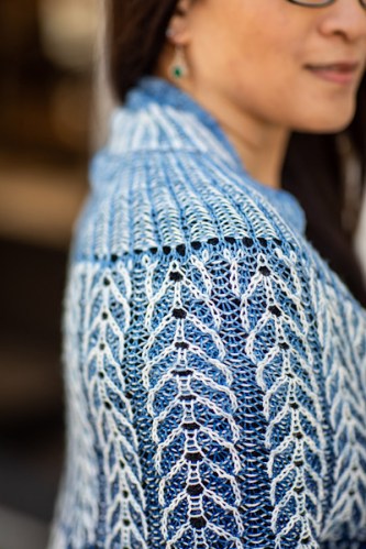 The Berry Galette Cowl and Wristlets give you the opportunity to create undulating patterns in your brioche. These were inspired by the blueberry bushes in my garden.