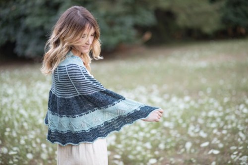 Andrea Hungerford, the creator of By Hand Serial, knit her version in blues, Twilight and Frost. I love the monochromatic shading here.