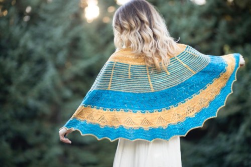 Puget Sound is a half-pi shawl, a half circle that wraps you in a hug. I used Hazel Knits Entice MCN in Hoppy Blond and Splish Splash, and it is decadently glorious.