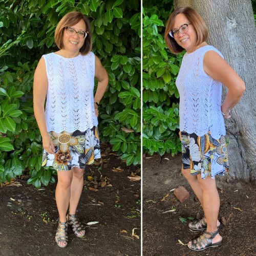I had just finished the white linen top, and I didn’t love it. I wanted minimal shaping, so I designed it with two simple rectangles. It turned out boxier than I wanted it to be, which meant that I needed to rip it back down to the beginning of the armholes, and add armhole shaping. That meant re-knitting 1/3 of the FO, ouch!