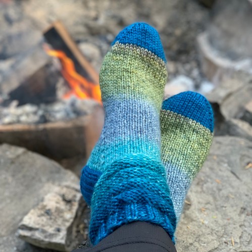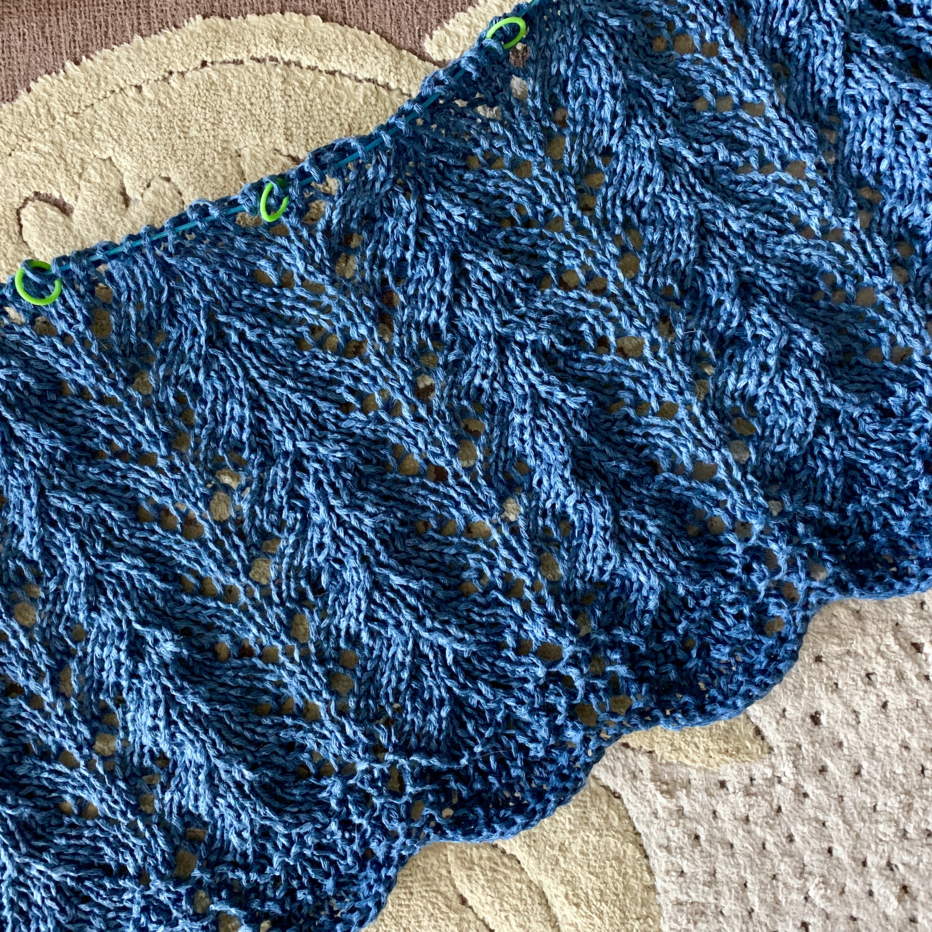 and I almost finished this project. We’ll see if blocking makes the brioche patterning show up better in the green section. Super fun to knit.