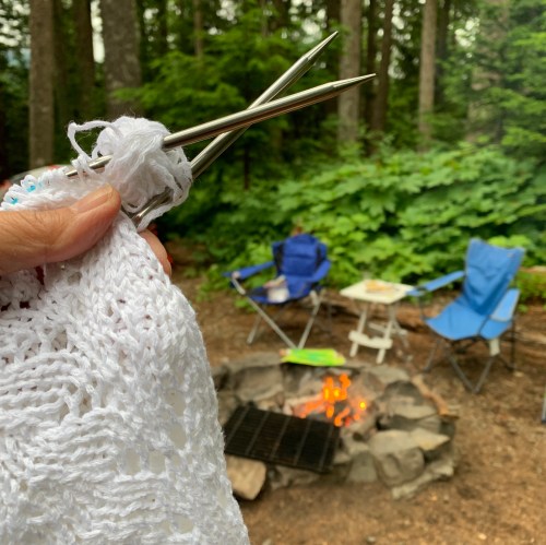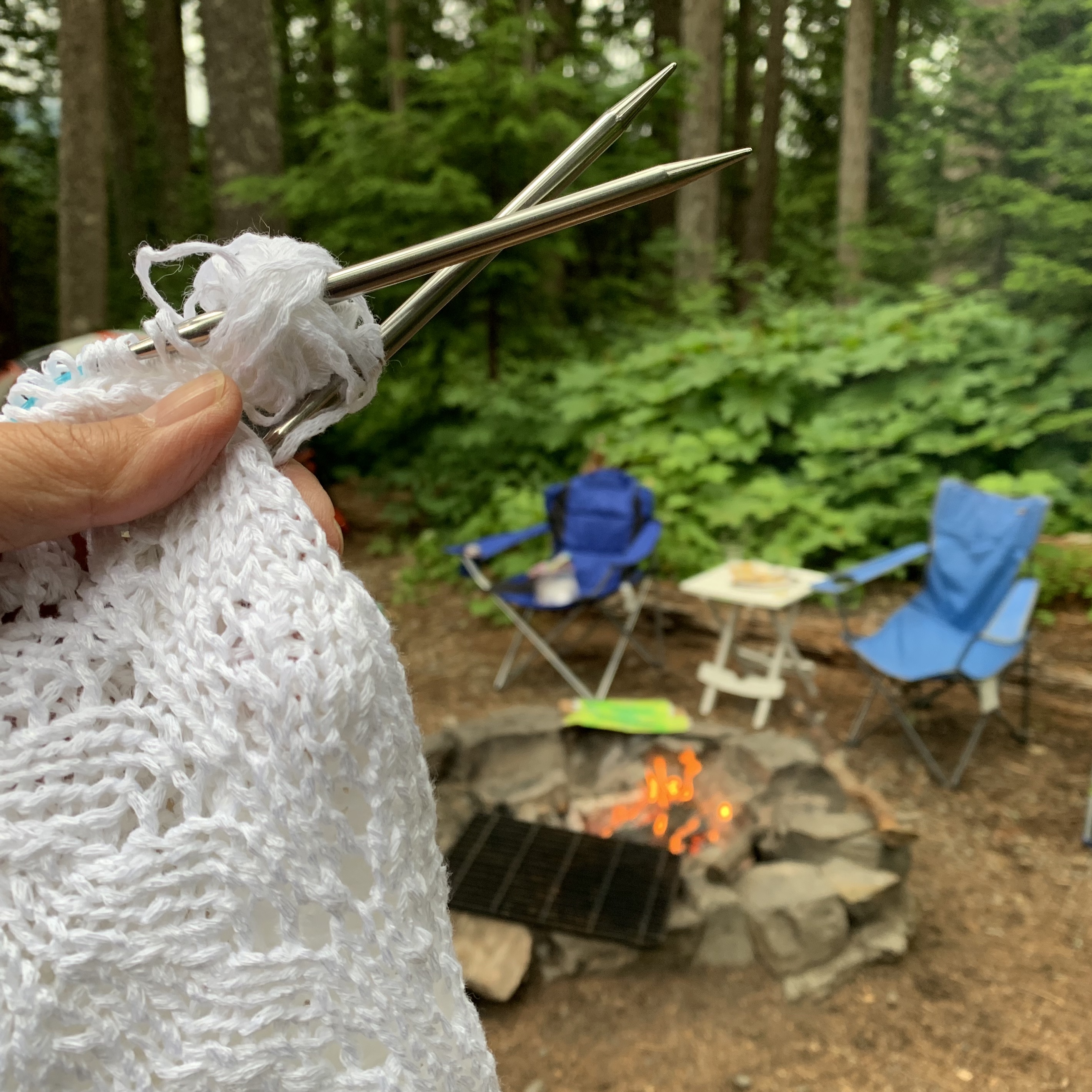 What kind of person brings white linen knitting on a camping trip? Yes, it’s me.