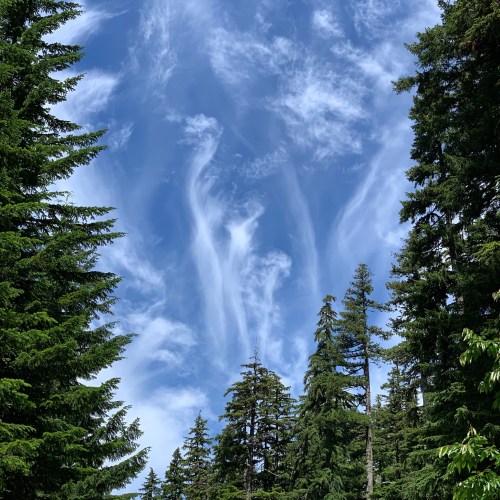 I’m home, skeeter-bit, itchy, and happy. We were at Swift Forest Camp on the Lewis River in Washington. It was marvelous to look up and see this by day…
