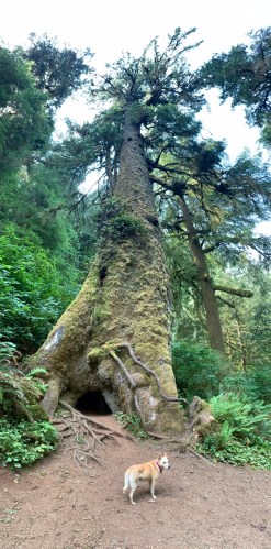 The hollow underneath was formed as the tree grew out of a nurse log, which then rotted away, hundreds of years ago.