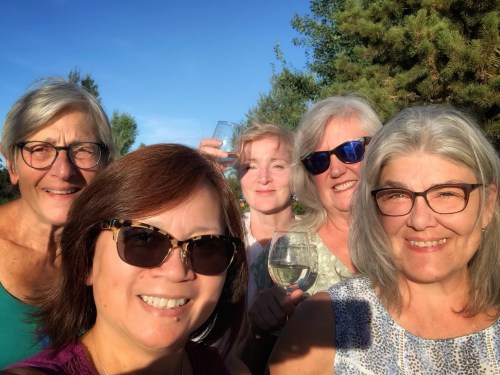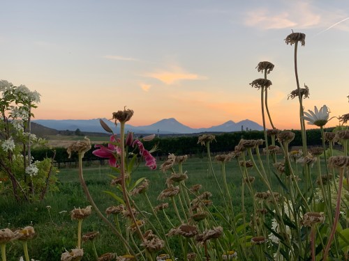 We went to Sisters (the town) on Saturday, shopped at a couple favorite stores (Bedouin and the Stitchin’ Post), had an impromptu visit with friends there (hi Becky & Lisa) and swam at their community pool, and then went for music and wine at Faith Hope and Charity Vineyards.