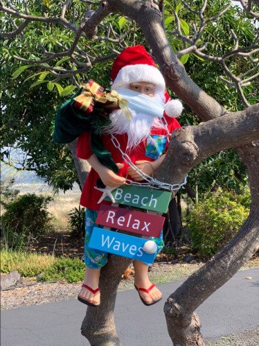 I’m a little slow getting ready for the holidays, but I work best under pressure. We arrived home from Kona (Hawaii) on Thursday night, and Friday I put new lights on the porch.