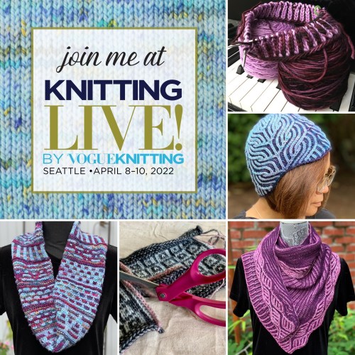 I’m headed to San Diego on Monday to speak and teach for the San Diego North Coast Knitters Guild. We’ll be playing with brioche, fancy elongated stitches, and steeks. And I’ll have plenty of knitting time on the plane to finish this entrelac project!
