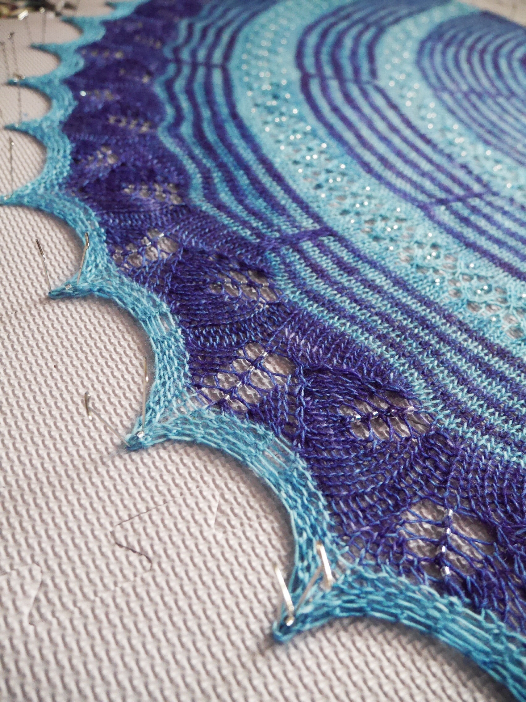 I also blocked my Fern Shawlette that I knit for my previous KAL. Finally! You’ll note that I’m artfully hiding the ends I have yet to sew in.